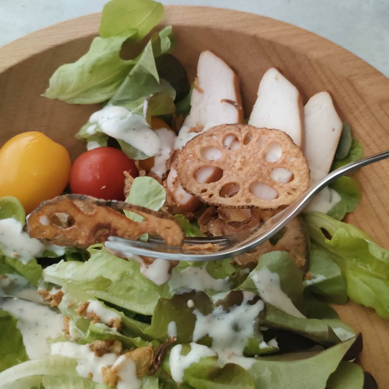 サラダが楽しみになるトッピング♪パリパリれんこんとサクサク玉ねぎ